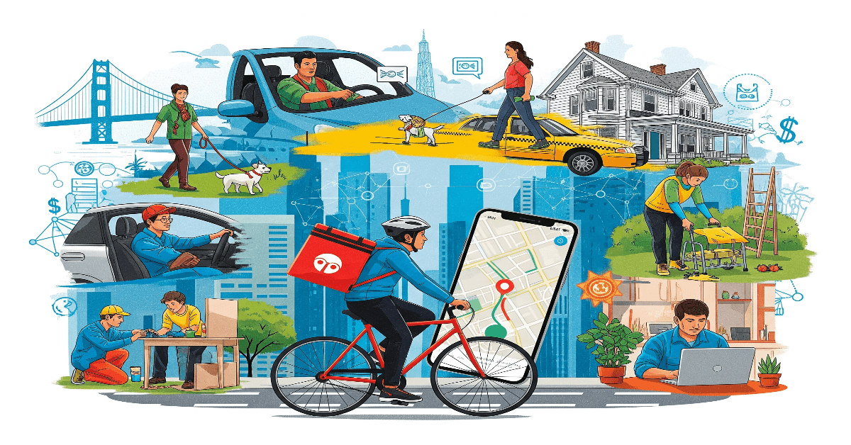 Gig jobs span across industries — from ride-sharing and food delivery to freelance digital services, pet care, tutoring, and even AI-related gigs.